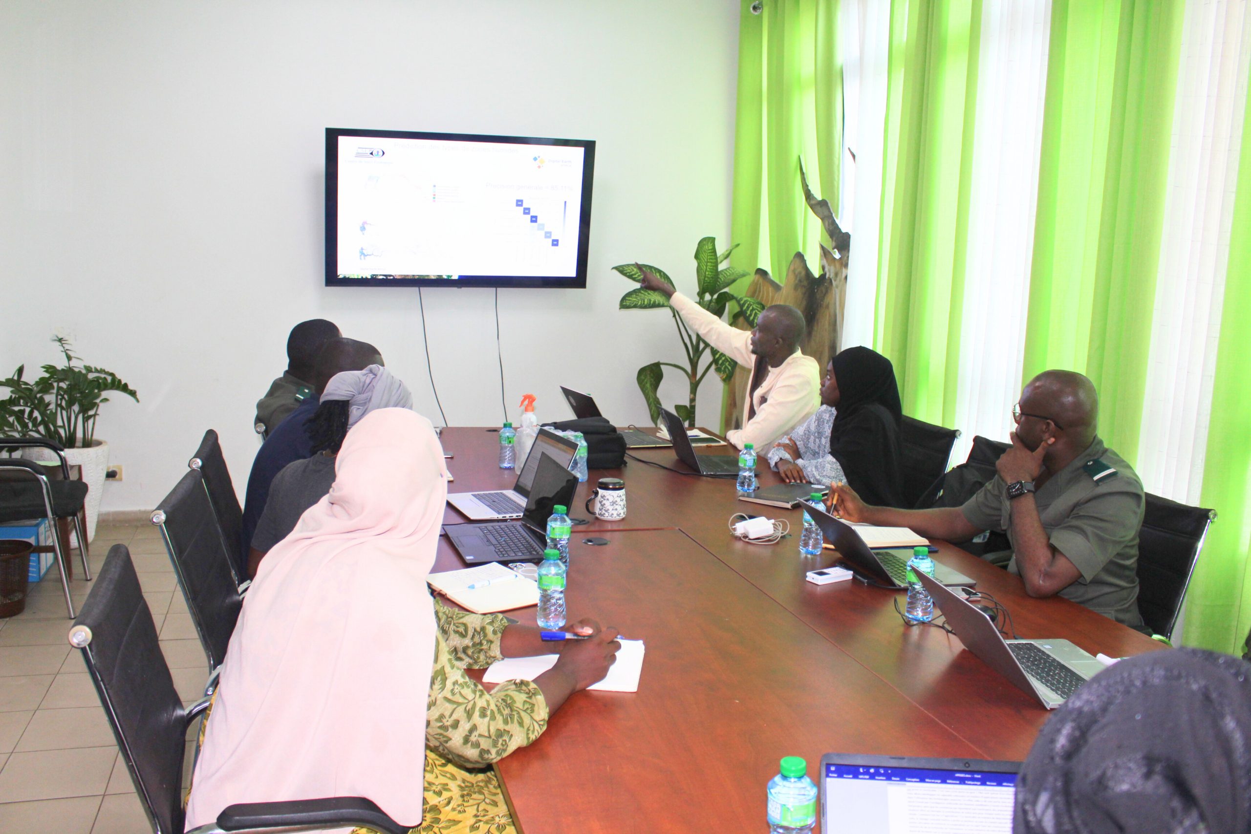 Les échanges ont notamment porté sur la typologie des zones humides identifiées, ainsi que sur les modalités d’appropriation et d’intégration de l’outil par la DPN, dans le but de renforcer ses capacités en matière de suivi environnemental, de planification et de gestion des aires protégées.